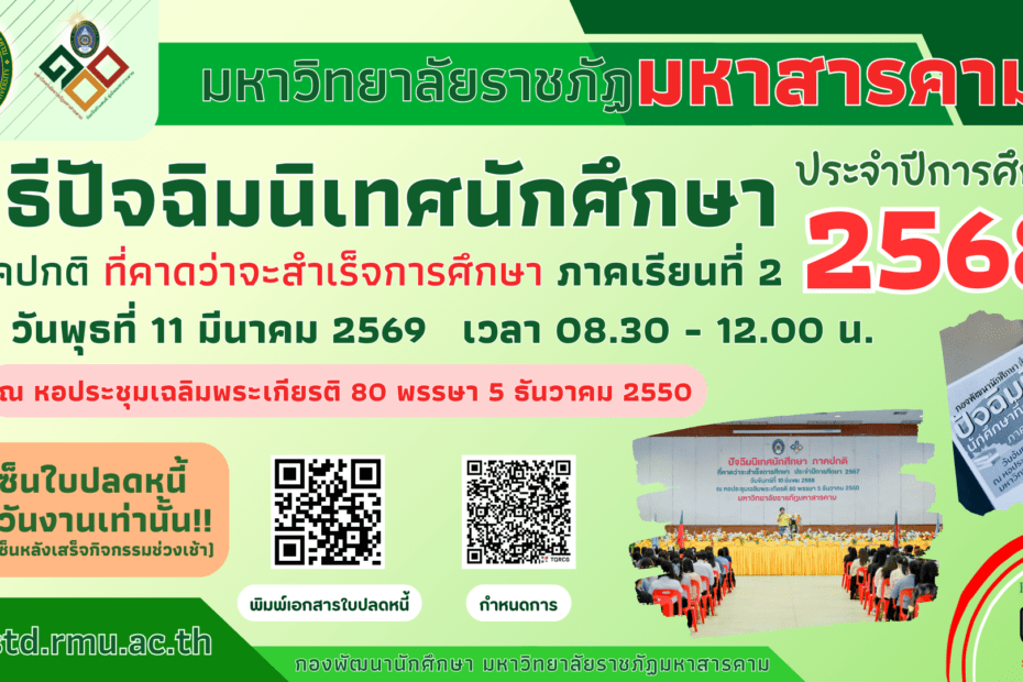 กองพัฒนานักศึกษา มหาวิทยา… Read More »พิธีปัจฉิมนิเทศนักศึกษา ภาคปกติ ที่คาดว่าจะสำเร็จการศึกษา ภาคเรียนที่ 2 ประจำปีการศึกษา 2568